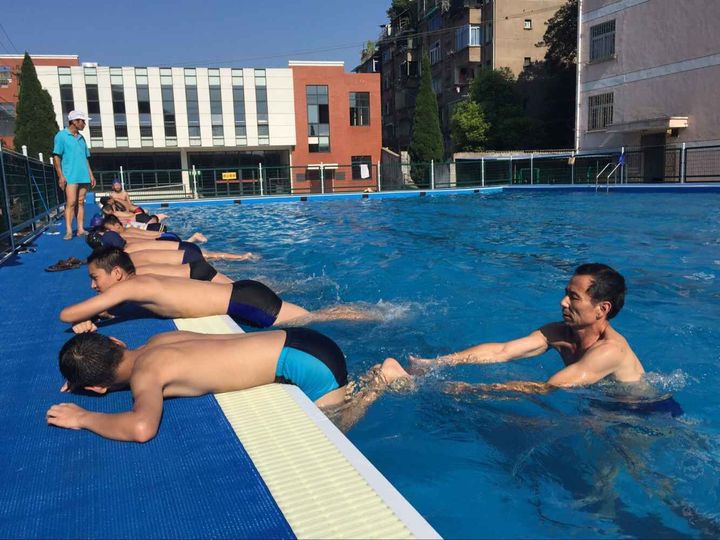 近几日,位于郑州某中学的一座拆装式游泳池通过验收,并投入试运行,深受广大师生喜爱。公司应邀去参观时发现,几多孩子泡在这座拆装式游泳池中,在教练的指导下练习游泳。虽然天气还有些微凉,但挡不住孩子们嬉水的热情。这座拆装式游泳池长25米、宽15米,水深1.2米,非常适合中学生的培训需求。